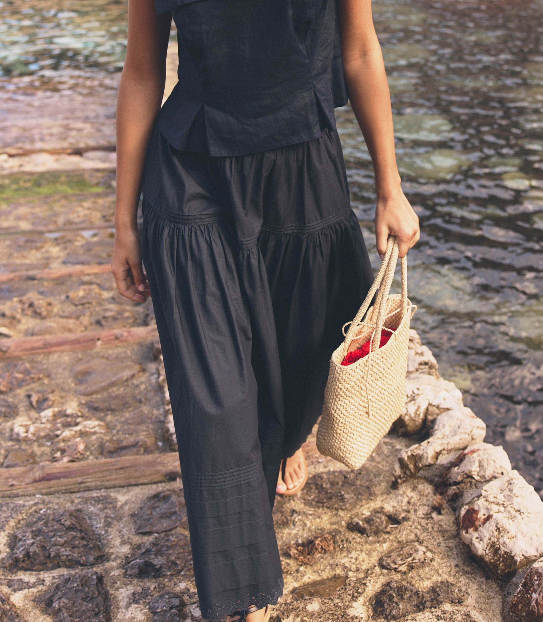 Handwoven by artisans in Madagascar from raffia, the ‘60s-inspired Bateau Bag is a bell-shaped handbag that’s easily dressed up or down. It features raffia-wrapped handles and a woven tie detail to close.