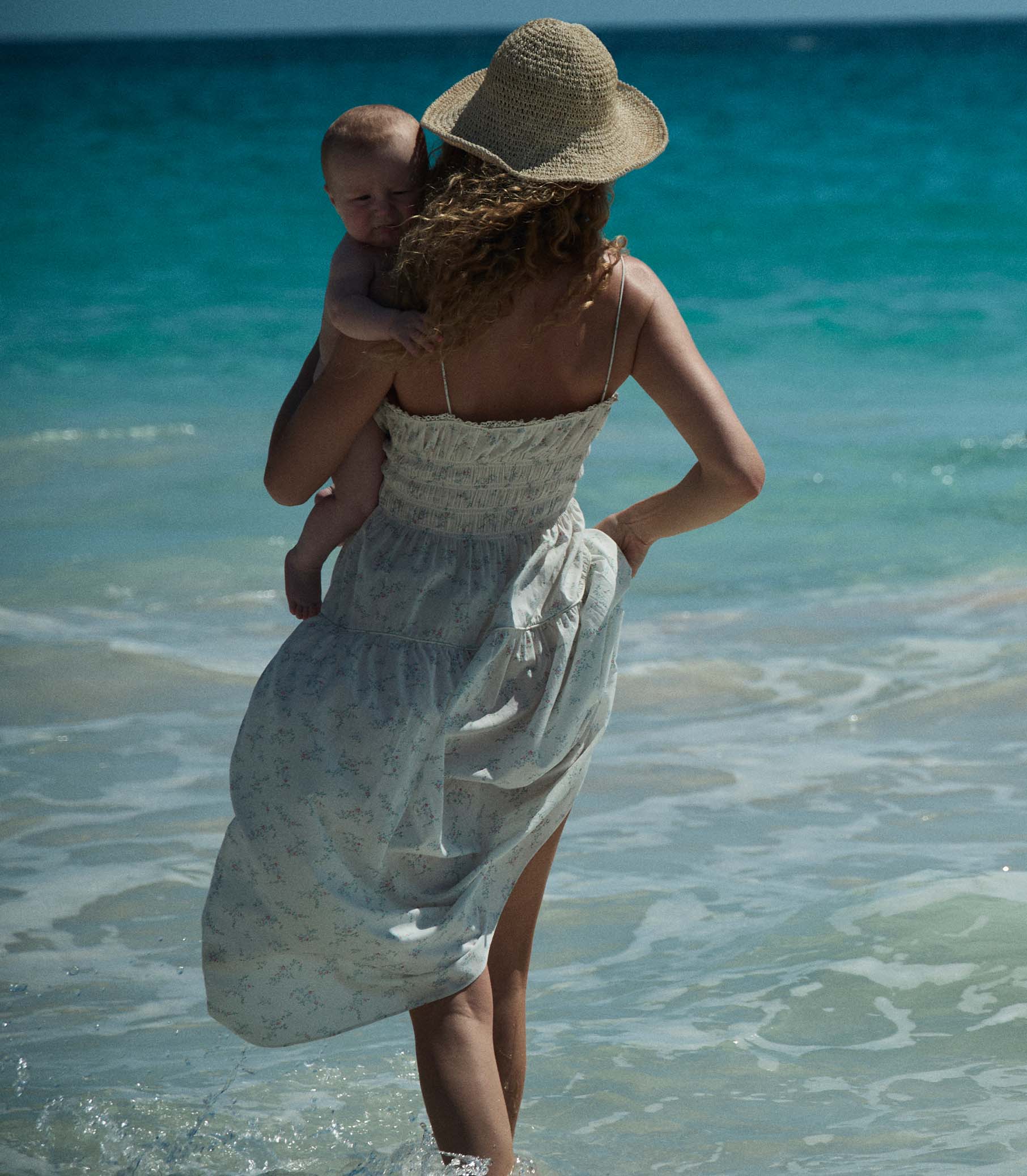 In soft organic cotton voile, the Brigide Dress takes cues from our fan-favorite Benoit Dress, adorned with our ‘50s-inspired Cottage Grove. It features a soft sweetheart neckline trimmed with scalloped-edge lace and ultra-skinny spaghetti straps. A fitted bodice with elasticized smocking gives way to an ankle-grazing A-line skirt.
