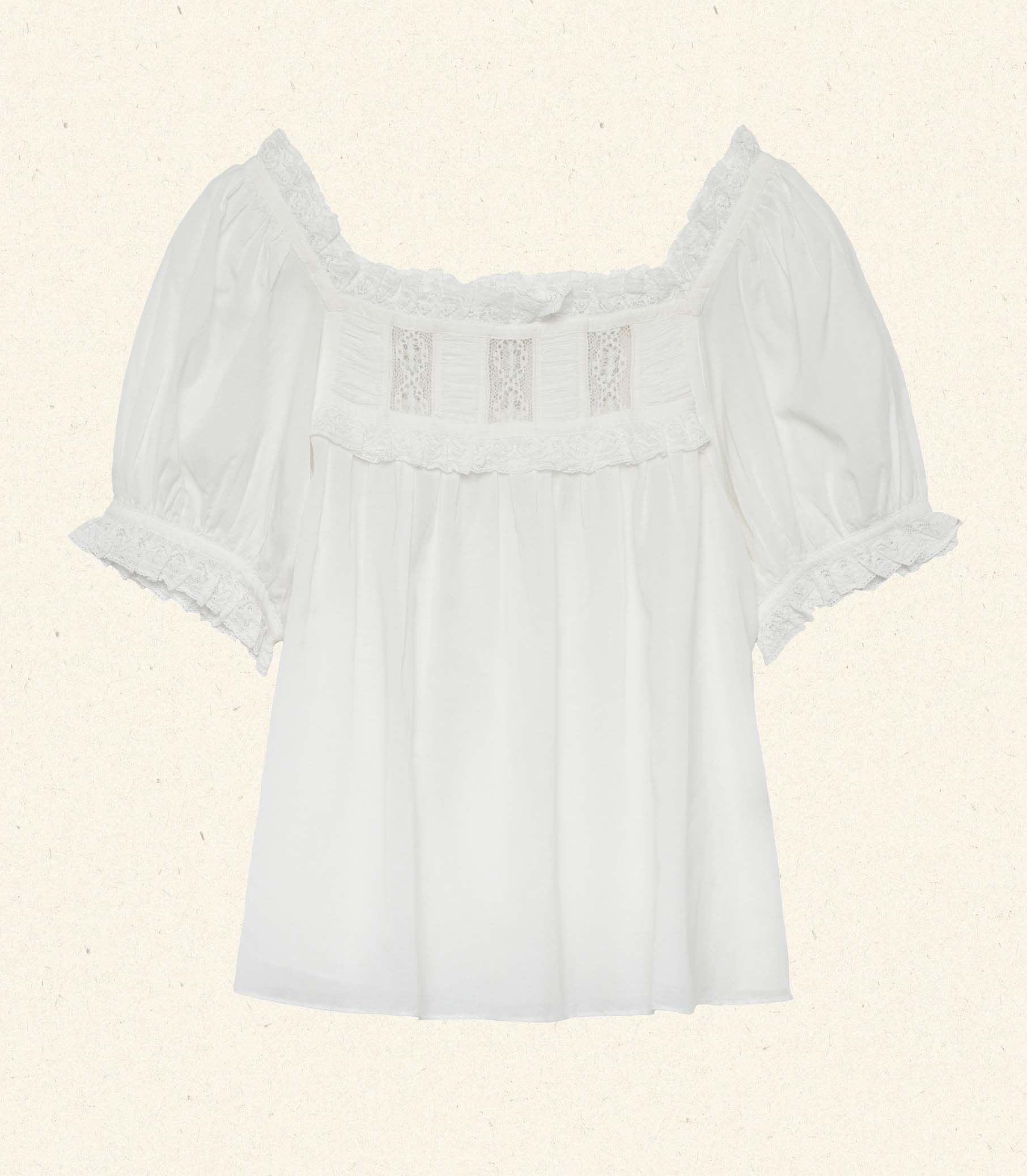 In a soft, lightweight blend of organic cotton and viscose, the Frances Top—which we first designed in 2019—is a Favorite Character we find ourselves reaching for again and again. It features a breezy silhouette, a square neckline, and short puffed sleeves trimmed with petite ruffles. A square yoke is adorned with alternating panels of ruching and inset lace. Leave it loose, or tuck it into your favorite pair of high-waisted jeans.
