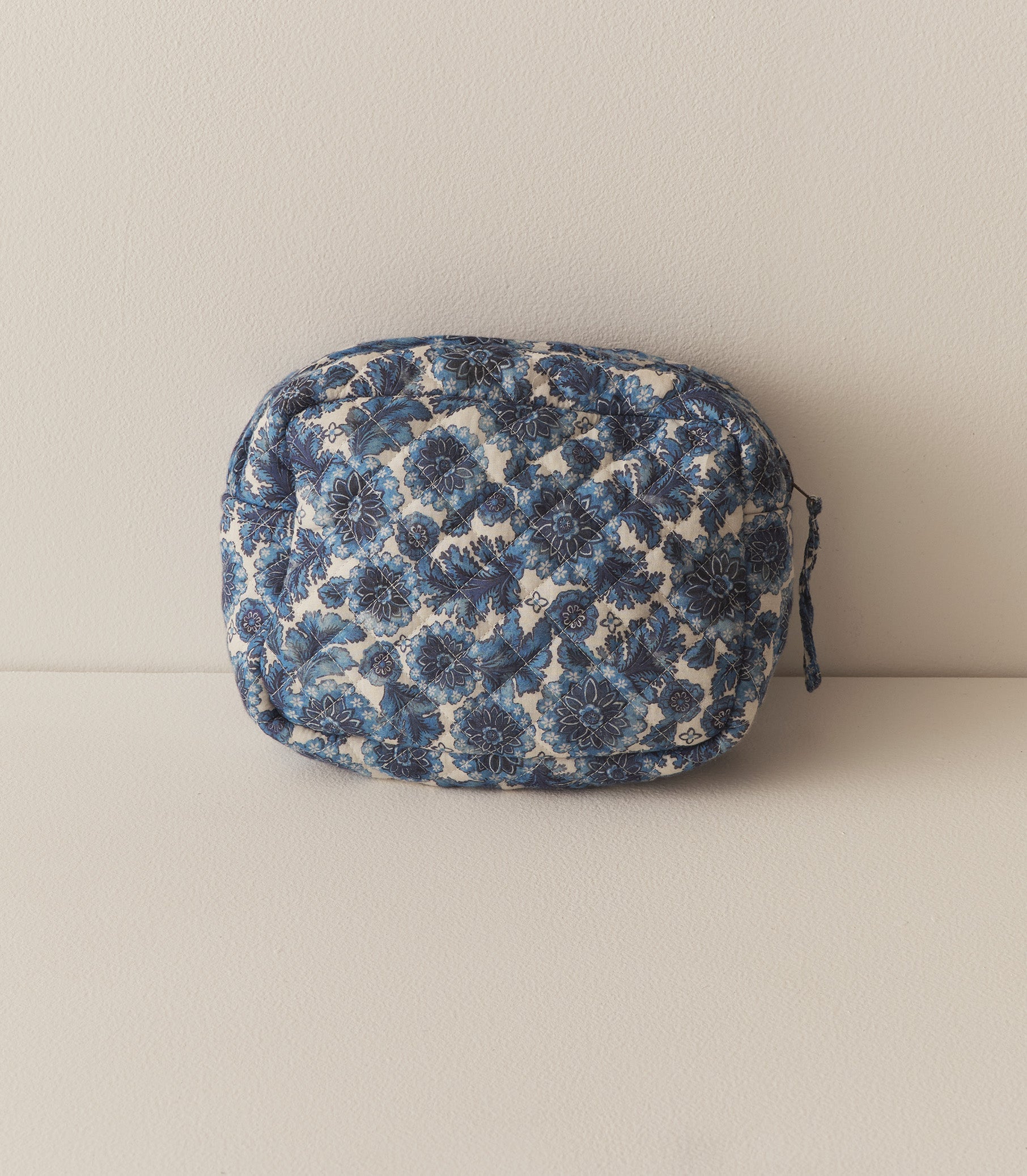 Crafted from plush quilted cotton, the Holloway Petite Quilted Pouch is refreshed in Bleu Soleil Fleurit for Summer. The perfect carryall for toiletries, makeup, and other essentials, it features an interior pocket and zipper closure with a tassel detail.