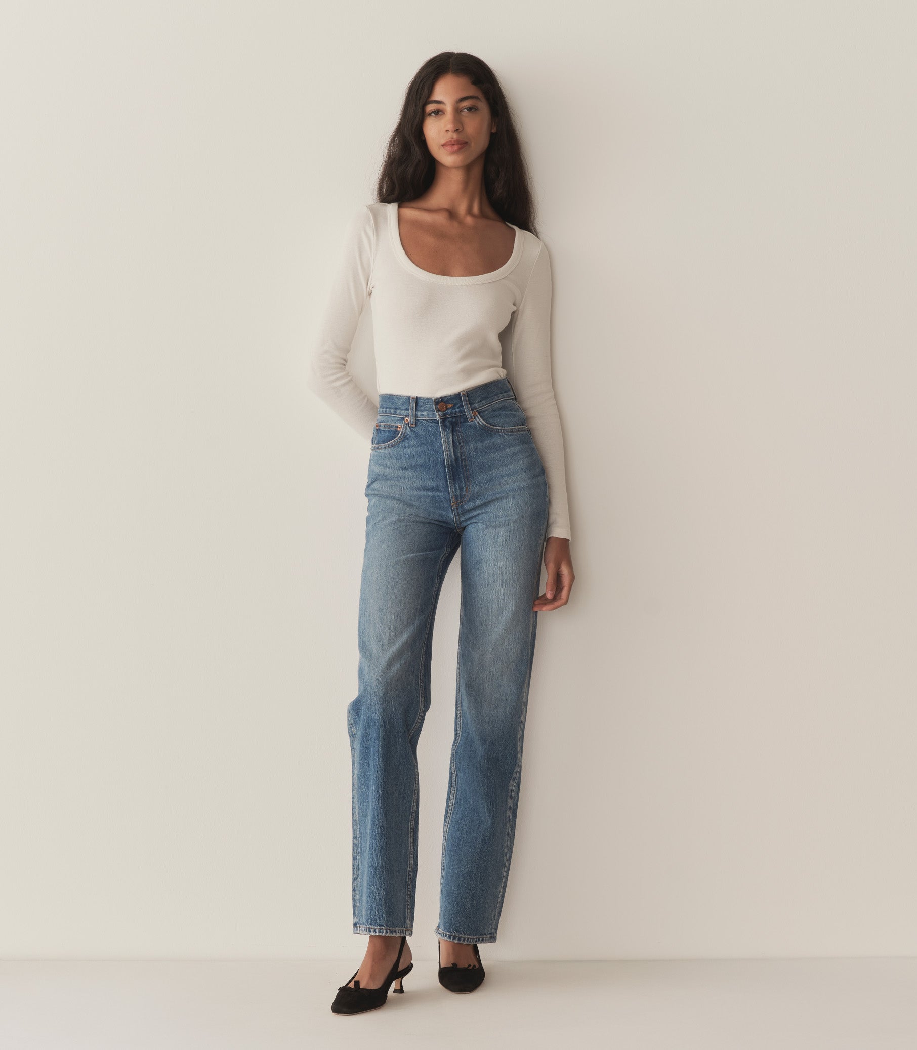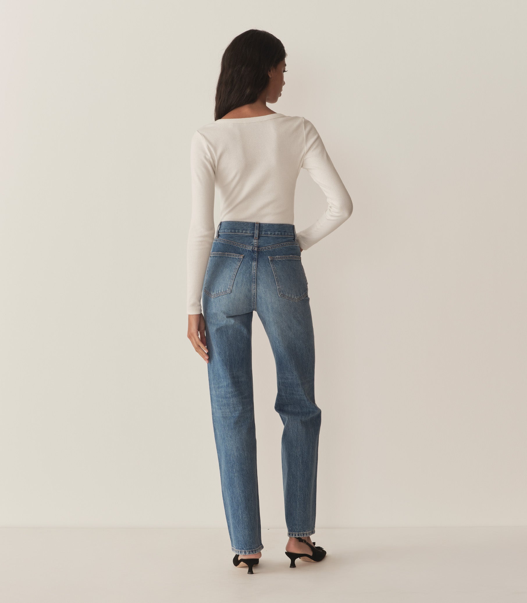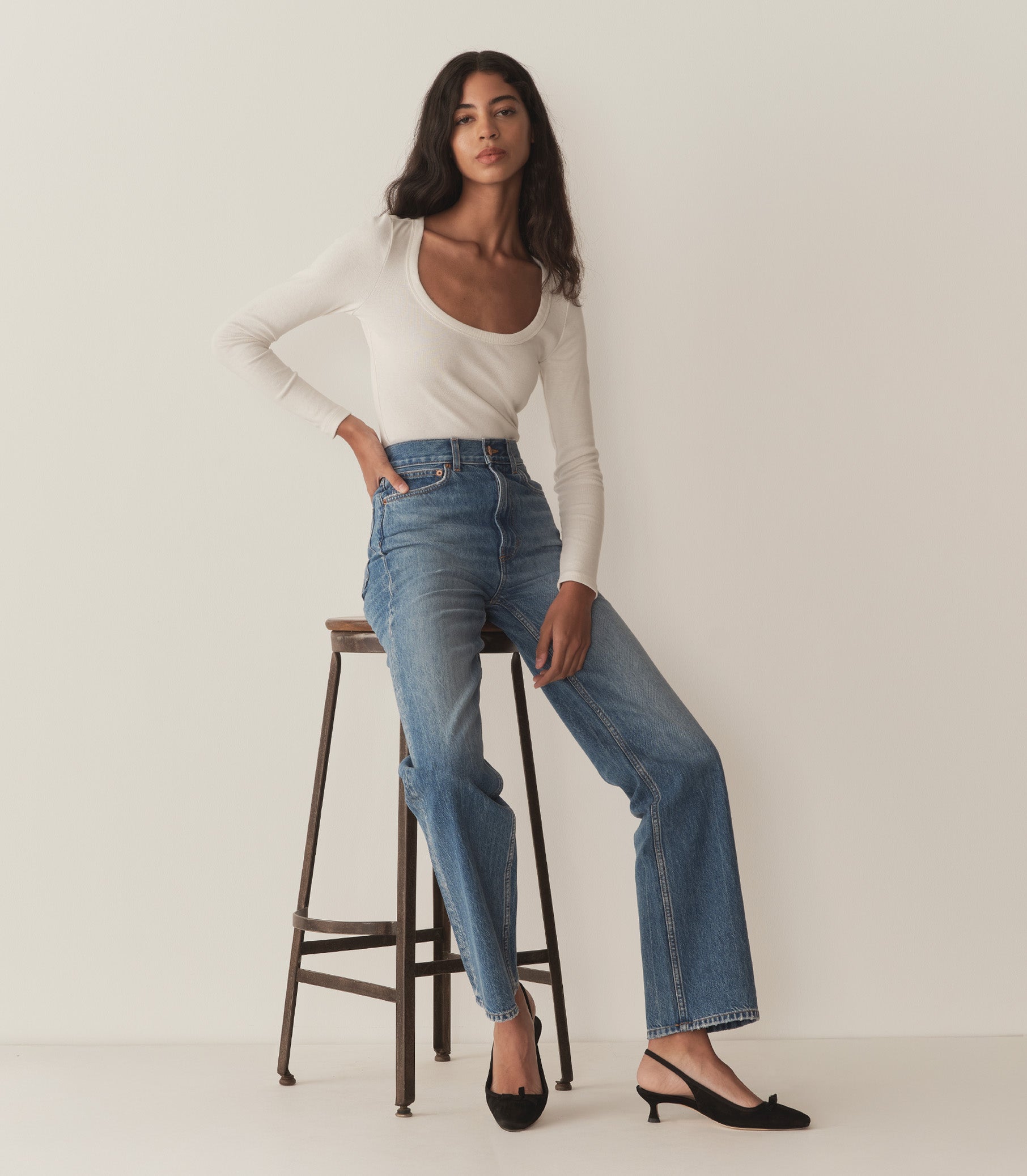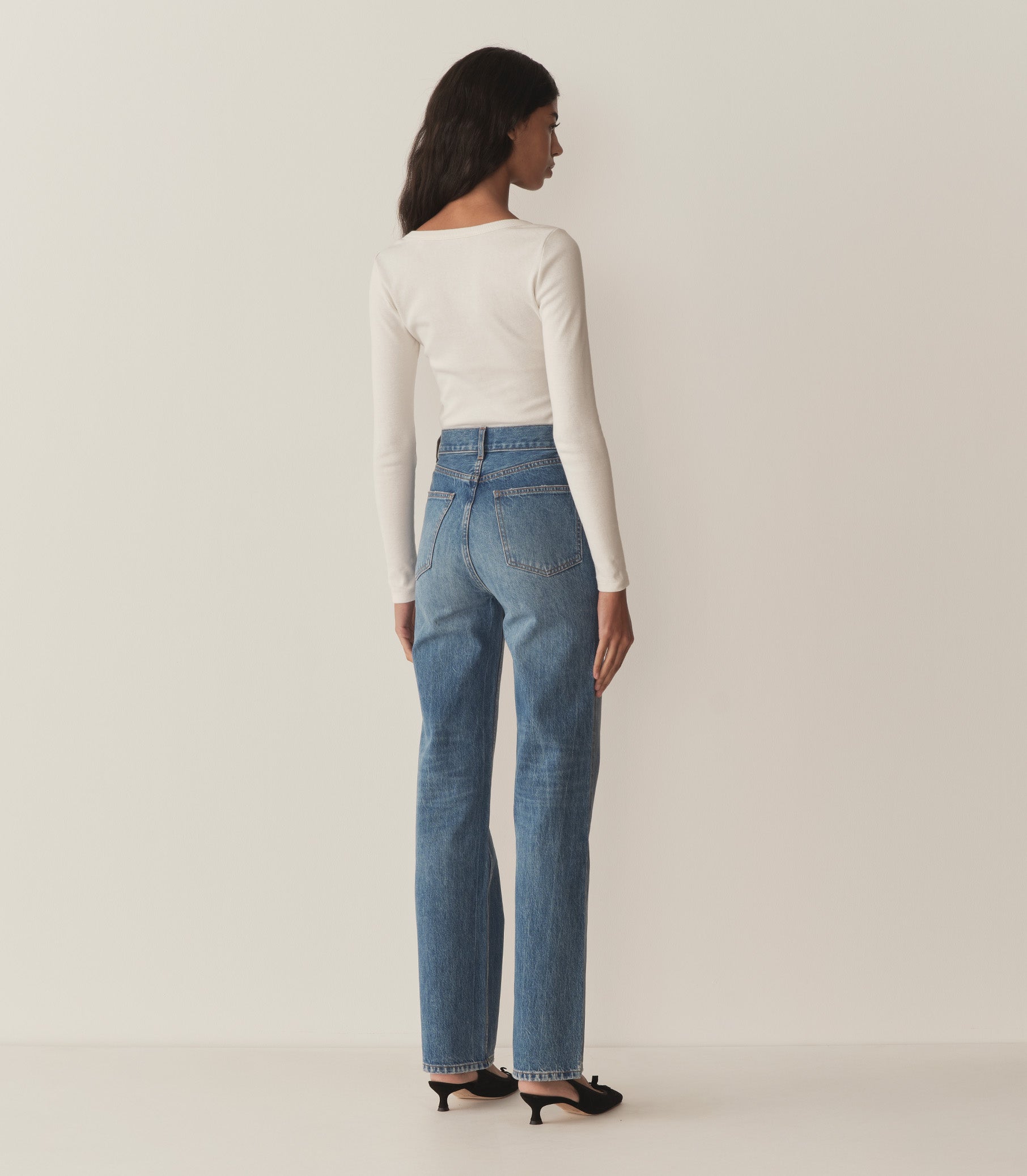 Crafted from 100% organic cotton denim, the new Laurent Jean offers a straight fit, inspired by vintage slim-fit jeans from the ‘70s. Featuring a high rise, and long, straight leg, the Laurent is detailed with a button-and-zipper closure, pointed back pockets, and classic front pockets.