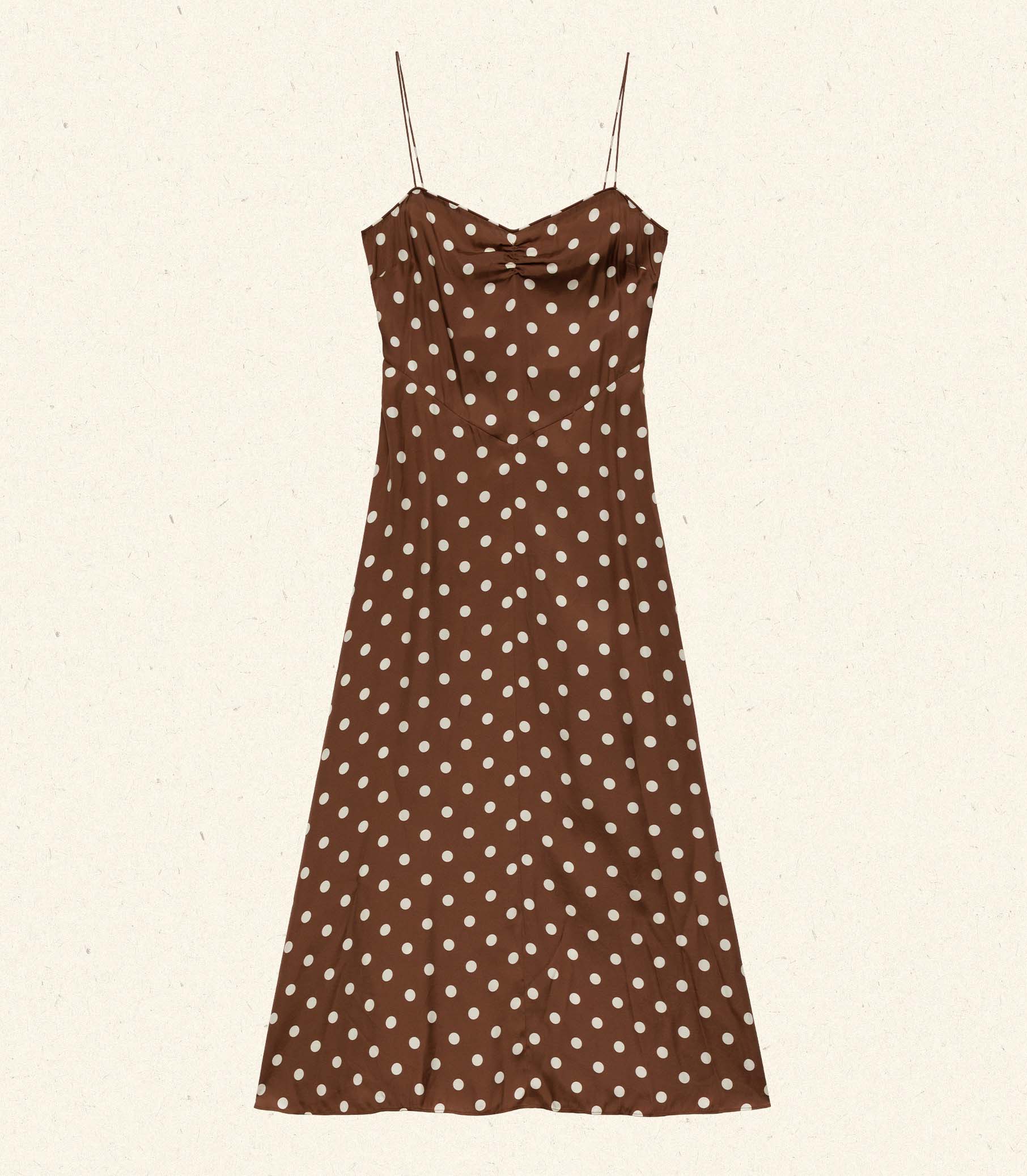Our founder-favorite Lorraine Dress returns, now reimagined in a silk-viscose twill splashed with a ‘50s-inspired Georgine Dot. The Lorraine features a sweetheart neckline, whisper-thin straps, and a gathered bust. A fitted bodice with an invisible side zipper gives way to an ankle-grazing, bias-cut skirt.