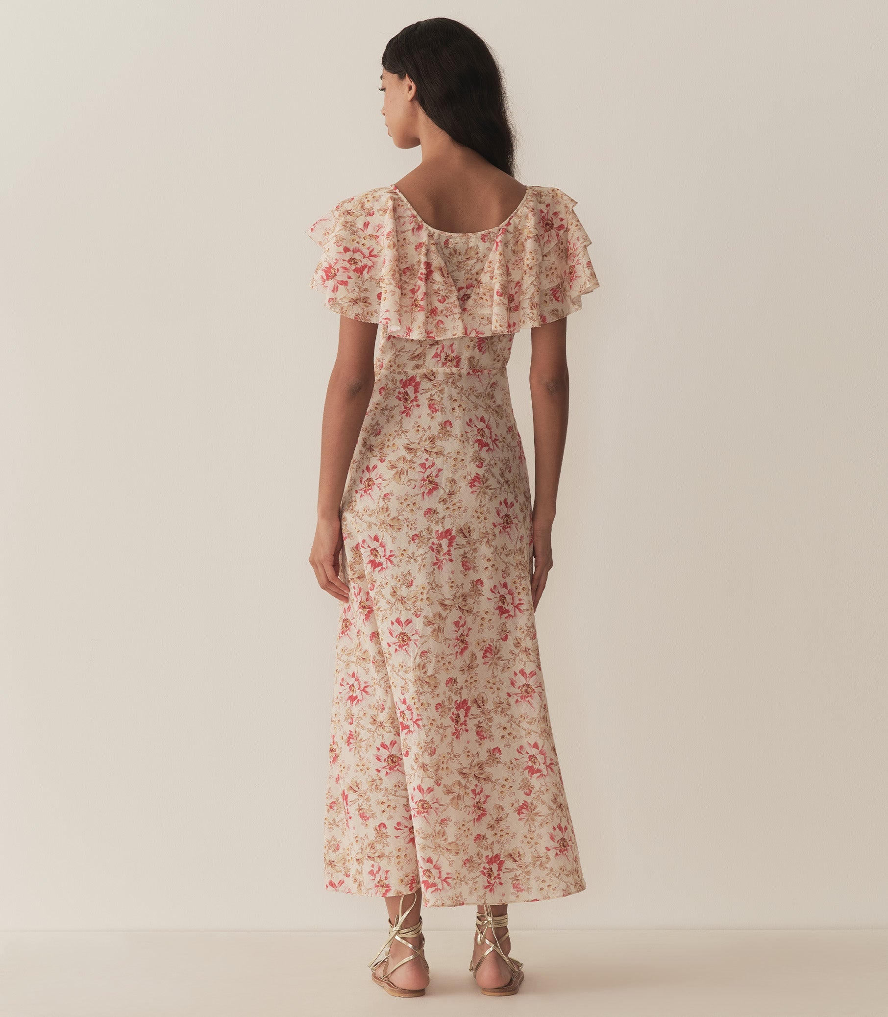 Splashed with our Fleurs de Provence—a print inspired by an antique French quilt sourced by our co-founder Katherine—our Nevara Dress is crafted from soft, lightweight organic cotton voile. With cascading ruffles at the shoulders and silk organza flowers at the neckline, the Nevara is detailed with V-shaped seaming at the bodice and a floor-length, bias-cut skirt. An invisible side zipper offers the perfect fit.