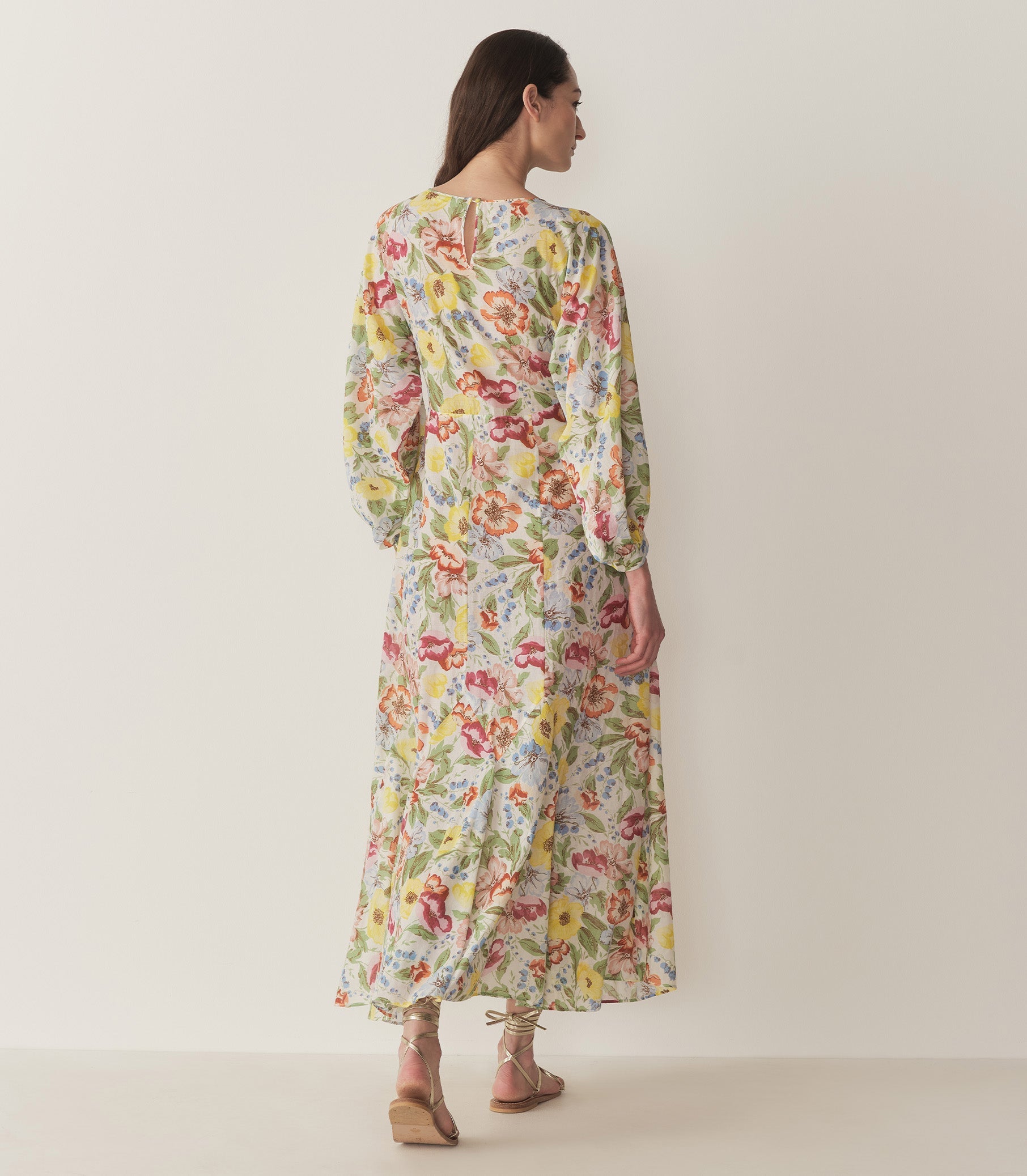 Reimagined for Spring in the softest organic cotton voile adorned with our colorful Anemone Bloom, the ‘30s-inspired Oliana Dress features a subtly shirred bust, voluminous elasticized sleeves, and an empire waist that gives way to an ankle-grazing skirt with princess seams. A single button with a keyhole detail fastens at the back of the neck.