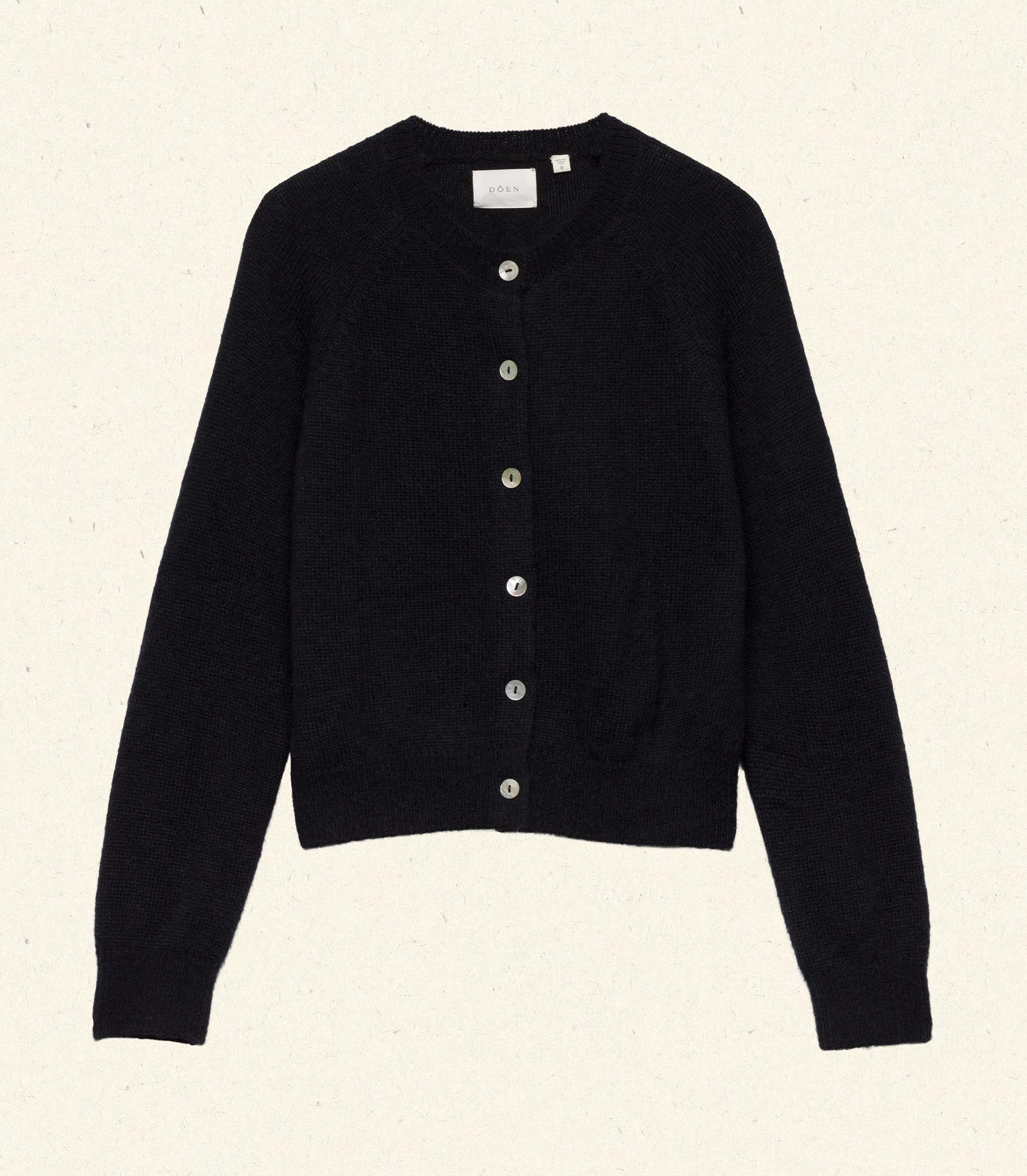 In a soft blend of superfine alpaca and merino wool, our forever-favorite Petra Cardigan features a crew neck, fitted raglan sleeves, and ribbing at the neckline, cuffs, and hem. A line of shell buttons extends down the front.