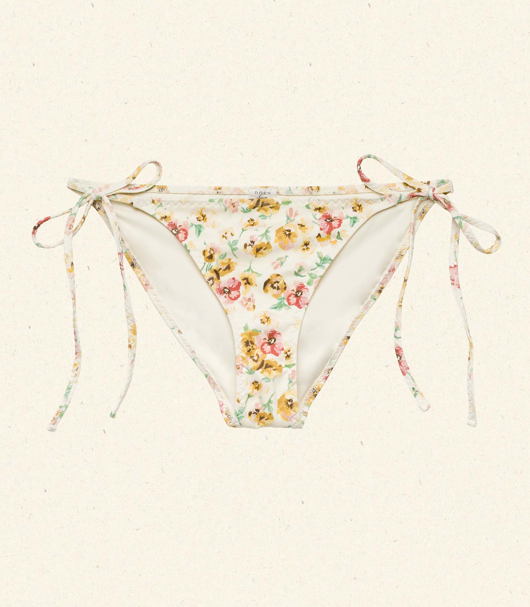 Rendered in our ‘60s-inspired Pansy Floral and fully lined, the Positano is our take on a classic string bikini bottom. With a low rise, medium-coverage cut, and adjustable ties at each side, it’s finished with delicate zigzag stitching along the edges.