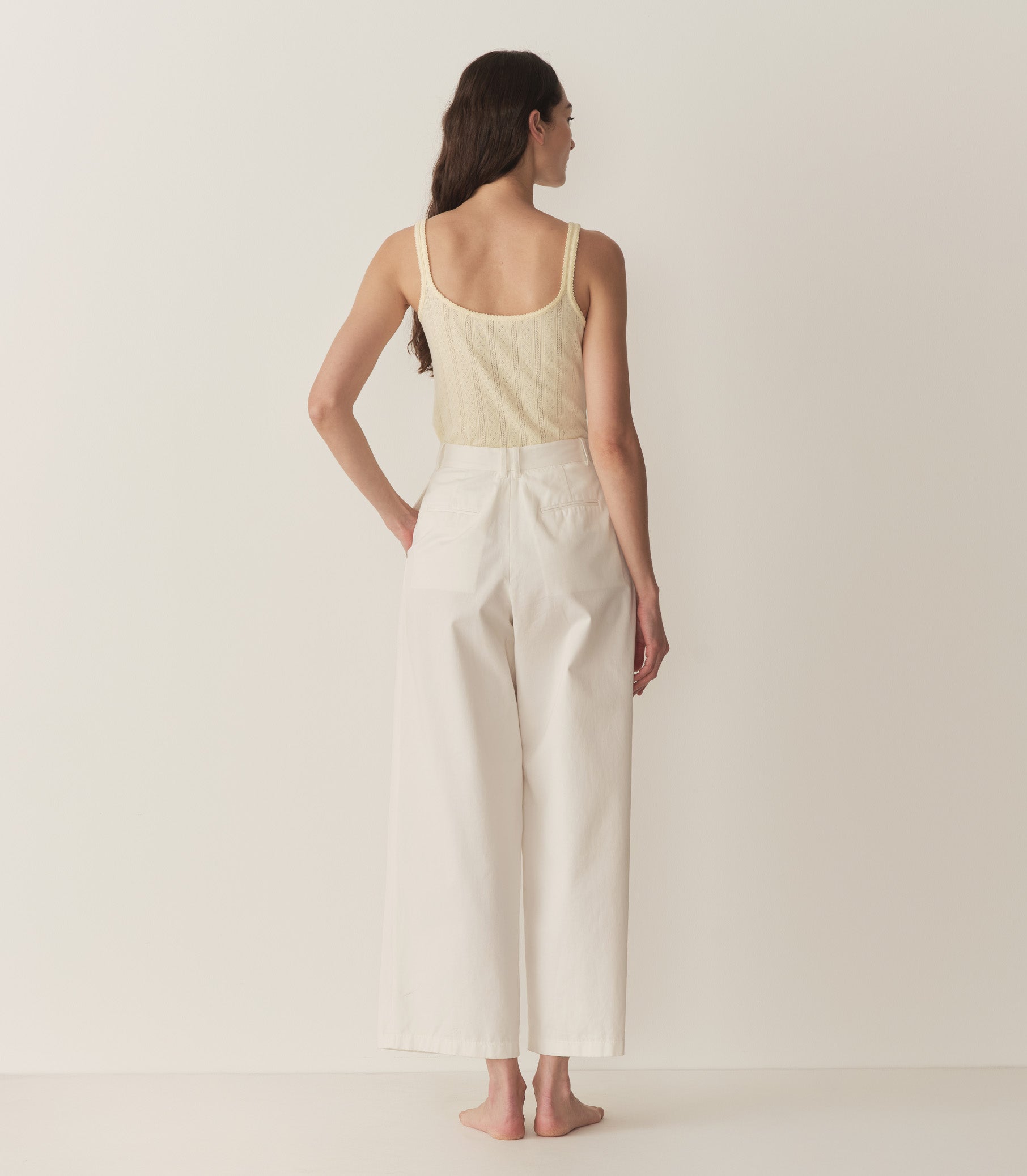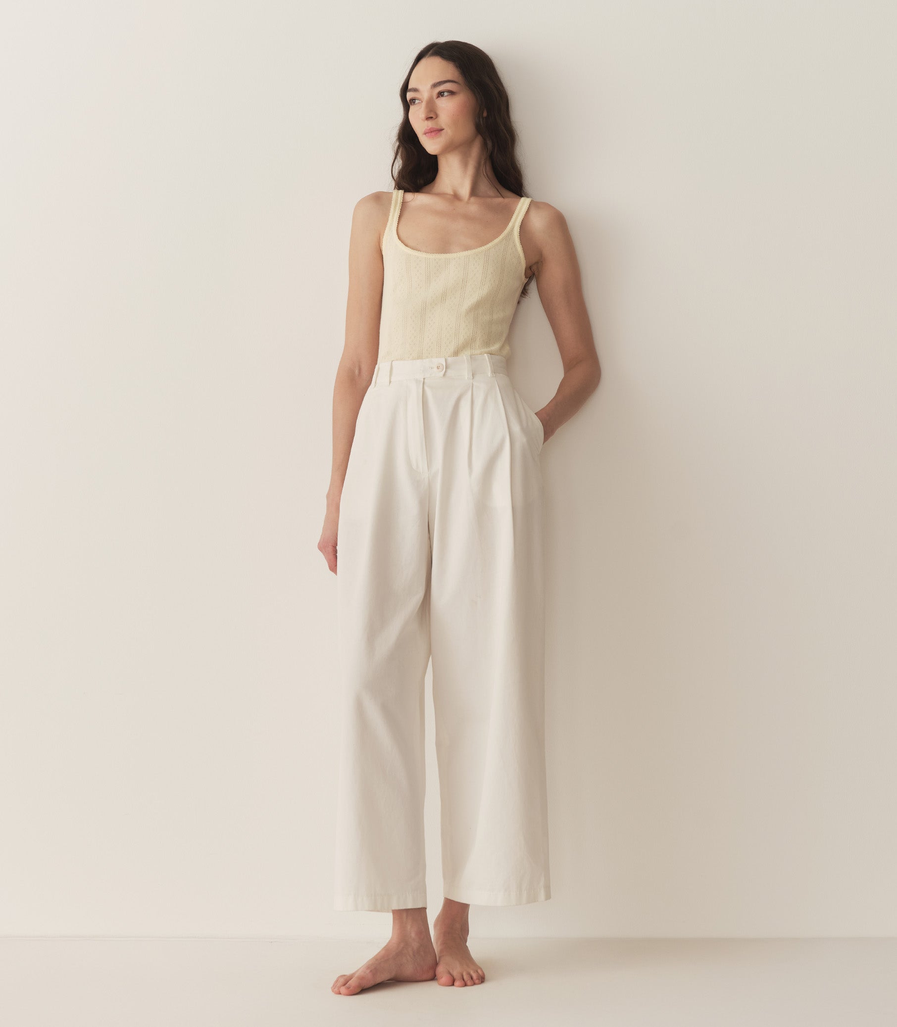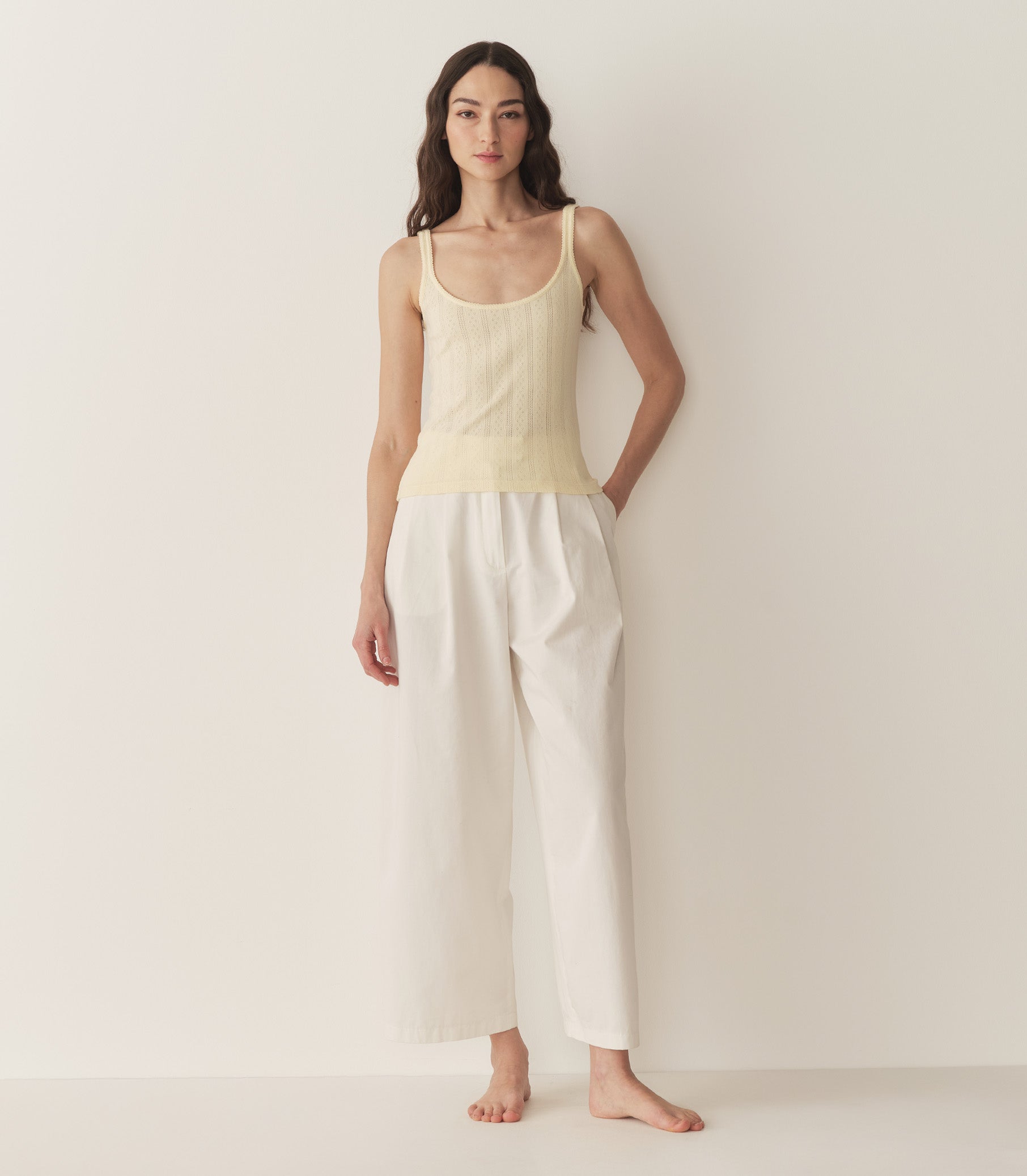 In the softest organic cotton pointelle, the Shae Tank features a fitted silhouette, slender straps, and a scoop neckline trimmed with delicate elastic lace.